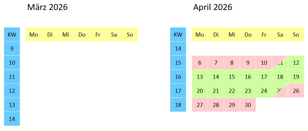 Belegungskalender (Änderungen vorbehalten)