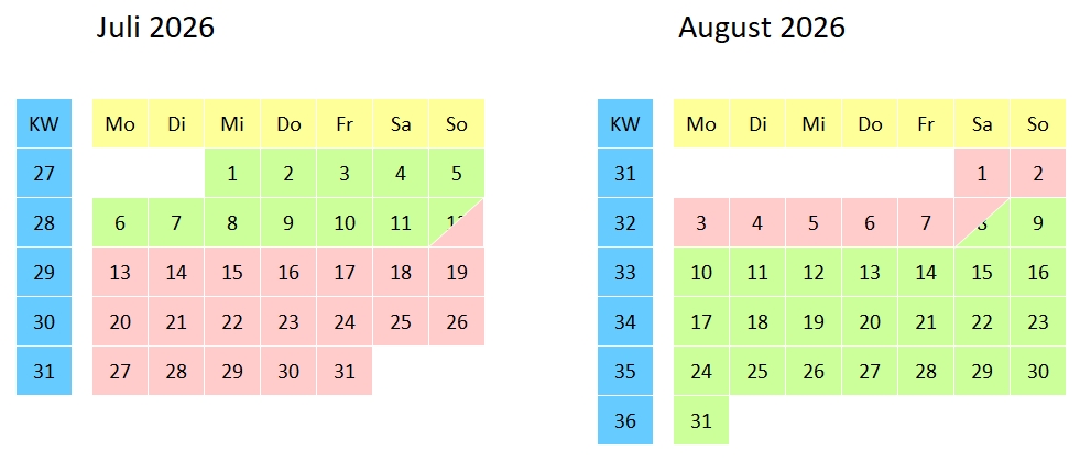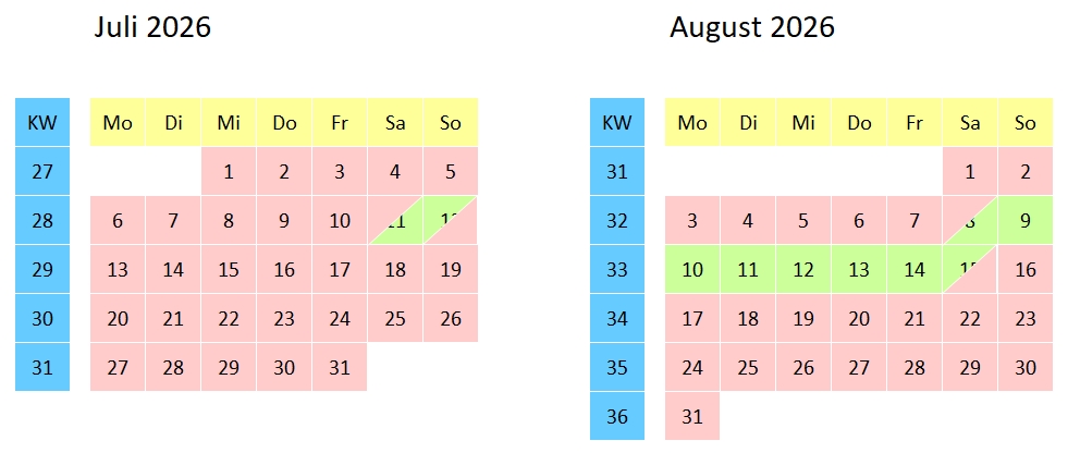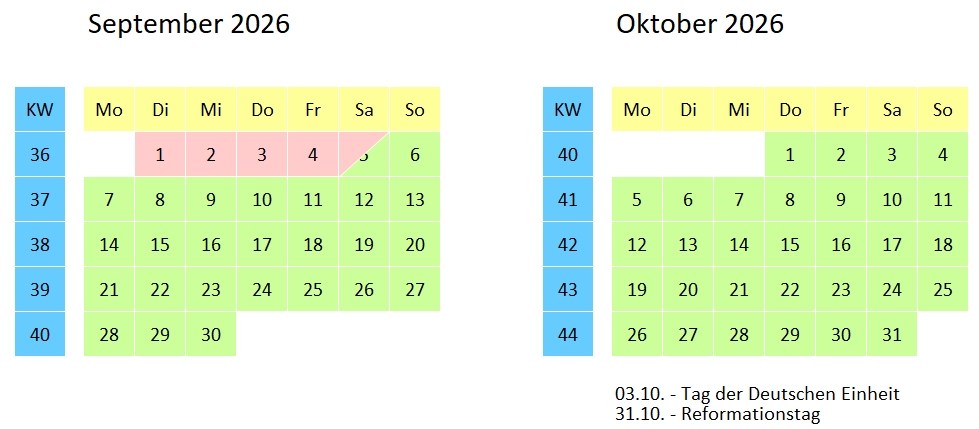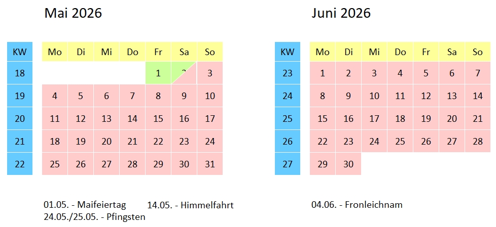 Belegungskalender (Änderungen vorbehalten)